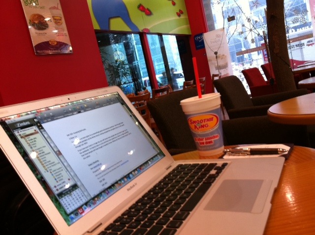 You may wonder where I write these daily Faithbuilders you receive via email. Usually at home in my study! But here’s where I was today. A smoothie king in Seoul Korea.